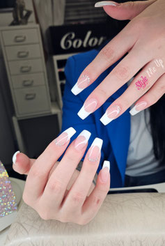 Beschreibung: Klassische Nagelspitze in Weiss oder Farbe. schräg, rund und gerdade.