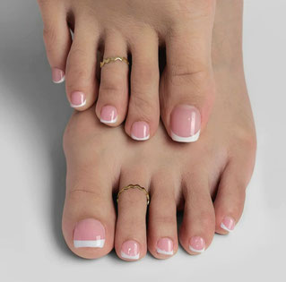 Beschreibung: Fussnägel werden mit Gel verstärkt oder verschönert. Als French oder Farbgel Design.